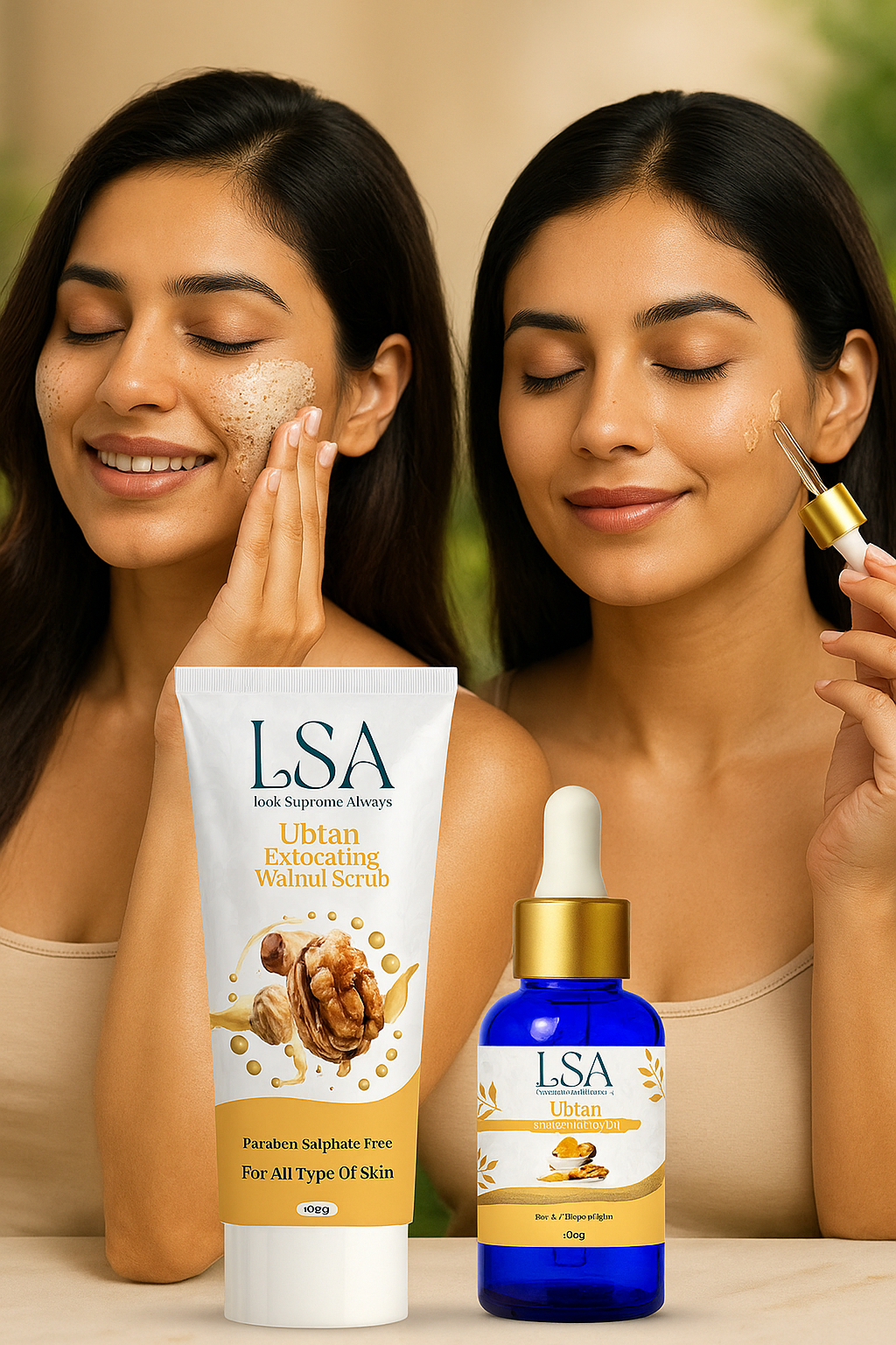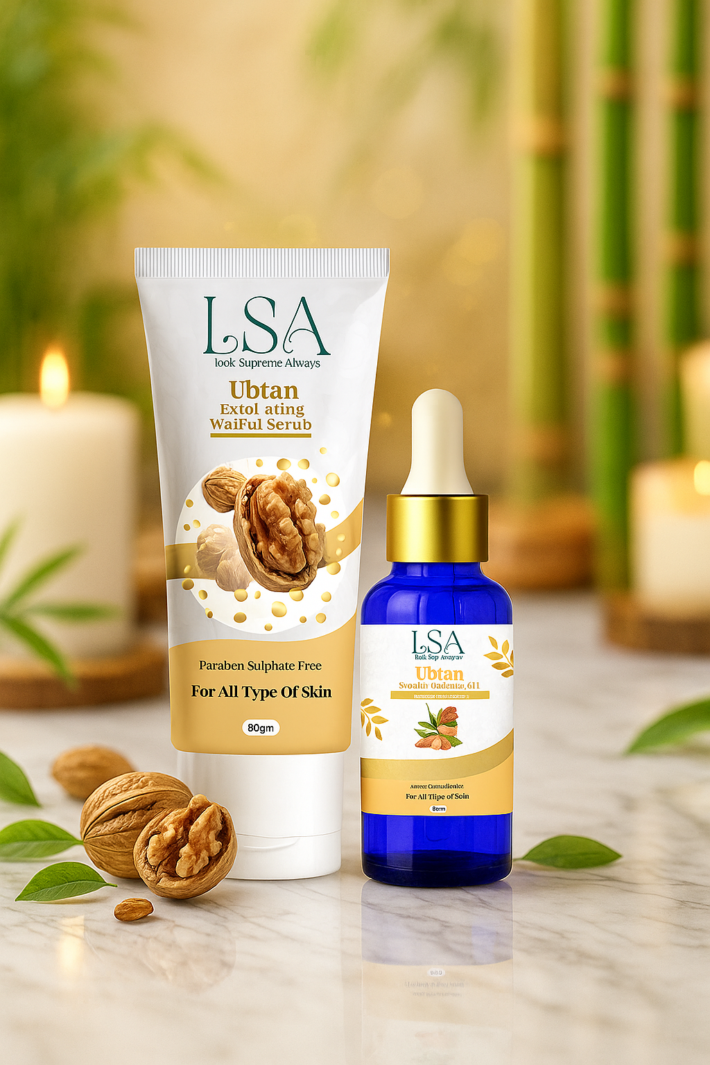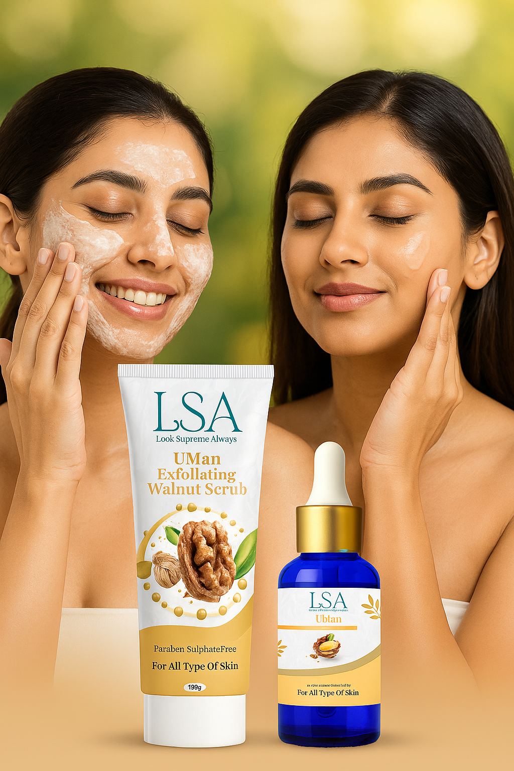 LSA Ubtan Radiance Ritual Duo – Exfoliating Walnut Scrub & Brightening Oil
